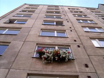 Keywords: 18.7.04 Komín 016.jpg cs Brno Komín Pastviny květiny v okně own I Sáček senior Brno-Komín