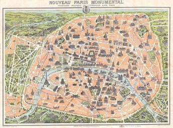| Keywords: 1900 Garnier Pocket Map or Plan of Paris, France ( Eiffel Tower ) - Geographicus - Paris-garnier-1900.jpg This rare c 1900 pocket map of Paris France combines the virtues of a map and a view Covers the old walled city of Paris and surrounding areas Paris proper is colored in appealing pastels and exhibits more map-like qualities in the layout of the streets trains and bridges Important buildings and monuments are shown in profile These include the Eiffel Tower The Arc de Triomphe and the Opera among hundreds of others The regions outside the walled city are mostly in view format with a horizon in at top and trees buildings and bridges shown in profile An altogether marvelous decorative map and one of the first tourist maps to show the Eiffel Tower Issued with its accompanying guide bound in red linen Features 13 pages of text with guides to museums hotels shops and other advertisements Engraved by L Poulmaire printed by Dufrenoy and published in Paris by Librairie Garnier Frères 1900 undated Size in 27 21 object history credit line accession number Paris-garnier-1900 Independent Issue Geographicus-source PD-art Maps of Paris in the 20th century 20th-century maps of Paris Maps of landmarks in Paris 1900 in Paris |