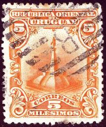| Keywords: 1900 Uruguay 5m Artigas Mi141.jpg en Stamp of Uruguay 5 milésimos issue 1900 Statue of Artigas in San José Michel N°141 2014-06-21 17 40 04 own Jacquesverlaeken Scan of a cancelled stamp > 100 years old cc-zero Postmarks of Uruguay Stamps printed by Waterlow Uploaded with UploadWizard Stamps of Uruguay 1900 Orange stamps Monumento a Artigas San José |
