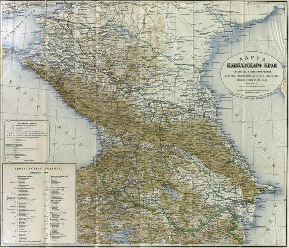 | Keywords: Карта Кавказского края 1903 года.jpg LargeImage ru Ка та Кавказского к ая 1903 года 1914 Отдѣлъ общiй Ад есь Календа ь http //dlib rsl ru/viewer/01003824985 page 1290 после ст 896 // Кавказскiй календа ь на 1915 годь LX г Издань по аспо яженiю амѣстника Его Импе ато скаго Величества на Кавказѣ канцеля iей намѣстника Съ п иложенiемь 1 П ебыванiе Его Импе ато скаго Величества Госуда я Импе ато а на Кавказѣ въ 1914 г съ т емя исунками ; 2 Ка та Кавказского к ая въ 40 ве стн масштабѣ въ к аскахъ Подь едакцiей А А Эльзенге а и П Стельмащука Тифлисъ Типог афія Канцеля іи амѣстника Е И В на Кавказѣ 1914 Военно топог афический отдел Кавказского военного ок уга PD-RusEmpire other versions PD-Art-100 Maps of the history of the Caucasus under Russian rule 20th-century maps of Azerbaijan |