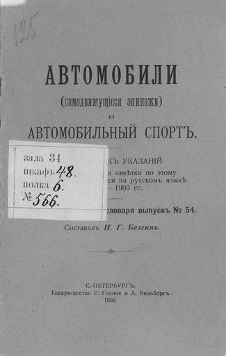 | Keywords: рнб библиография безгин история автомобиля историяавтомобиля 1903 national library of russia nationallibraryofrussia nlr history of automobile historyofautomobile bibliography blackandwhite text monochrome writing document black and white РНБ: Шифр хранения: 34.48.6.566 Автомобили (самодвижущиеся экипажи) и автомобильный спорт : 1-й сборник указаний на книги, статьи и заметки по этому предмету, появившиеся на рус. яз. в 1900-1903 гг. - Санкт-Петербург : т-во Р. Голике и А. Вильборг, 1903. - 15 с vivaldi.nlr.ru/bx000003812/view РНБ: Шифр хранения: 34.48.6.566 Автомобили (самодвижущиеся экипажи) и автомобильный спорт : 1-й сборник указаний на книги, статьи и заметки по этому предмету, появившиеся на рус. яз. в 1900-1903 гг. - Санкт-Петербург : т-во Р. Голике и А. Вильборг, 1903. - 15 с vivaldi.nlr.ru/bx000003812/view |