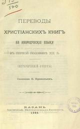 Переводы христианских книг на инородческие языки в первой половине XIX в. : (Ист. очерк) / Свящ. К. Прокопьев. - Казань : типо-лит. Имп. Ун-та, 1904. - 40 с.; 25