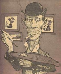 | Keywords: 1904 - Caricatura a lui Stefan Luchian aparuta in revista Furnica.png B-II-m-A-18789 en Caricature of the painter and friend Ştefan Luchian Probably completed around the time when Luchian and Petrescu-Găină began sharing the same work location see Ionel Jianu Petru Comarnescu Ştefan Luchian Editura de stat pentru literatură şi artă Bucharest 1956 Published on the cover of Furnica magazine with a caption announcing Luchian's exhibit at the Romanian Atheneum 1904-12-19 Furnica 14/1904 available through the Bucharest City Library http //digitool dc bmms ro 8881/R/3YEN91RDQHN2LLAT98CMIIVH6GP3F19S45D2I6YYIM6AN3KQEN-00734 func search DacoRomanica archive Creator Nicolae Petrescu-Găină other versions PD-old-auto 1931 Furnica magazine cartoons by Nicolae Petrescu-Găină Caricatures of Ștefan Luchian 1904 cartoons People in 1904 1904 in Romania Caricatures of painters Men smoking cigarettes in art Romanian Athenaeum |