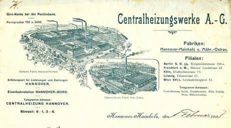 | Keywords: 1908-02-01 Centralheizungswerke AG Briefkopf Fabriken Hannover-Hainholz und Mährisch-Ostrau (Moravská Ostrava), Ausschnitt.jpg Um 1900 für das erste Jahrzehnt des 20 Jahrhunderts vorgedruckter Briefkopf Scan mit 600 dpi Ausschnitt der Centralheizungswerke AG mit den - sicher idealisierten - Vogelschau-Stichen über die Fabriken in Hannover-Hainholz und der Fabrik in im seinerzeit österreichischen Stadt Mährisch-Ostrau heute Stand 09/2014 Moravská Ostrava Daneben findet sich unter anderem eine Liste der Filialen in Berlin S O 33 Köpenicker Straße 154a Frankfurt am Main Mainzer Landstraße 65 Köln Gladbacher Straße 19 Leipzig Elisenstraße 61 Wien XII/2 Lerchenfeldergürtel 53 sowie die dazugehörigen Telegramm-Adressen Mit Stand vom September 2014 konnte anhand der Stiche noch kein etwaiger Rest der abgebildeten Gebäude oder der umfangreichen Eisenbahn-Anlagen eindeutig und georeferenziert zugeordnet werden Scan vom Original Bernd Schwabe in Hannover ~ 1900 unknown engraver <gallery> File 1908-02-01 Centralheizungswerke AG Briefkopf Fabriken Hannover-Hainholz und Mährisch-Ostrau Moravská Ostrava Ausschnitt Gevelsberg am Rhein jpg Brieffuß </gallery> PD-old Centralheizungswerke AG 1908-02-01 Ostrava 1908 documents Invoices from Hannover Engravings of Hannover Gevelsberg |