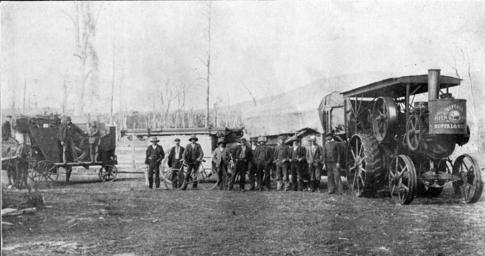 | Keywords: tasmania blackandwhite monochrome outdoor black and white Power's threshing plant at Tunnack, with Buffalo Pitts traction engine. T R G Williams photo Power's threshing plant at Tunnack, with Buffalo Pitts traction engine. T R G Williams photo |