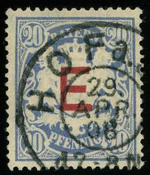 | Keywords: 1908 Bayern 20Pfg Hof MiD4.jpg en Stamp of Bavaria 20 Pfennig ultramarine 1908 overprint for 1900 official issue for Railways E Eisenbahnbehörden cancelled at HOF am Saale Upper Franconia on 29-04-08 Michel N°D4 2014-06-07 23 58 48 scan own scan Jacquesverlaeken scan Copyright information PD-Germany-§134-KUG PD-1923 cc-zero Jacquesverlaeken Postmarks of Bavaria Blue stamps History of Hof Saale Official stamps of Bavaria 1908 stamps of Bavaria German stamps review keep | ||||