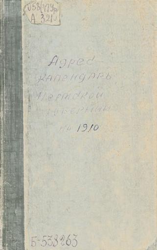 Keywords: Адрес-календарь и справочная книжка Пермской губернии на 1910 год / издание Пермского губернского статистического комитета. — Пермь : Типо-литография Губернского Правления, 1909. — [490] с., разд. паг. : [3] л. портр., [1] л. табл., [13] л. рекл. объявл. Электронная библиотека Белинки: <a href="http://elib.uraic.ru/handle/123456789/6368" rel="nofollow">elib.uraic.ru/handle/123456789/6368</a> 1910 1909 пермскаягуберния электроннаябиблиотекабелинки фондыбелинки адрескалендарь справочнаякнижка