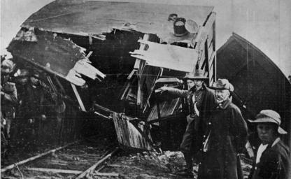 Keywords: tasmania blackandwhite monochrome outdoor black and white Derailment of a troop train north of Andover. Smashed horse box. C J Fox photo Derailment of a troop train north of Andover. Smashed horse box. C J Fox photo