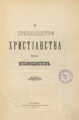 Keywords: Викторин (Любимов, Валентин Дмитриевич; 1821-1882). О превосходстве христианства пред мухаммеданством / [Еп. Викторин]. - Казань : Центр. тип., 1910. - 42 с. : ил. Авт. указан на обороте тит. л. <a href="http://dlib.rsl.ru/rsl01003000000/rsl01003766000/rsl01003766105/rsl01003766105.pdf" rel="nofollow">dlib.rsl.ru/rsl01003000000/rsl01003766000/rsl01003766105/...</a> ленинка ргб оцифровка электронныйресурсргб историяказани историятатарстана |