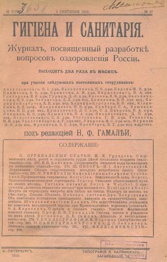 Keywords: Гигиена и санитария. 1910. №17. — Тит. лист.jpg Image page PD-RusEmpire Magazines of Russia 1910 Title pages from Russia Medical journals Title pages uploaded by Steven Pavlov from various sources Magazines published in Saint Petersburg Magazines of Russia to be categorised by name