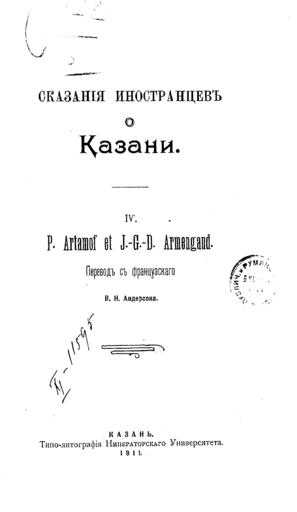 Keywords: rsl russian state library russianstatelibrary russian empire russianempire катанов казань kazan tatar 1911 katanov ргб электронный ресурс ргб электронныйресурсргб российская империя российскаяимперия российская государственная библиотека российскаягосударственнаябиблиотека перевод blackandwhite monochrome text black and white P. Artamof et J.-G.-D. Armengaud / Пер. с фр. В.Н. Андерсона. - 1911. - 15 с. Катанов, Николай Федорович (1862-1922). Сказания иностранцев о Казани : 1-3 / [Н. Катанов]. - [Казань] : типо-лит. Имп. Казанск. ун-та, 1903-1911. - 2 т.; 24 Источник: РГБ dlib.rsl.ru/rsl01003000000/rsl01003972000/rsl01003972650/... P. Artamof et J.-G.-D. Armengaud / Пер. с фр. В.Н. Андерсона. - 1911. - 15 с. Катанов, Николай Федорович (1862-1922). Сказания иностранцев о Казани : 1-3 / [Н. Катанов]. - [Казань] : типо-лит. Имп. Казанск. ун-та, 1903-1911. - 2 т.; 24 Источник: РГБ dlib.rsl.ru/rsl01003000000/rsl01003972000/rsl01003972650/...