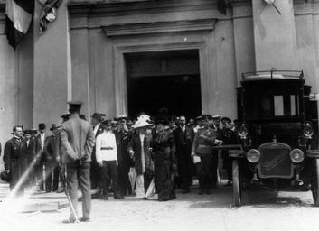 | View Original: | 1912. 06. Великая княгиня Мария Павловна (справа) и другие посетители выходят из Конногвардейского манежа после посещения выставки .jpg (1662x1206) | |||