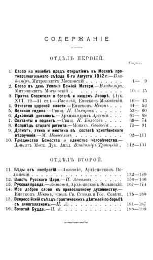 | Keywords: Голос церкви. 1912. Октябрь. — Содержание.png Титульный лист File Владими Богоявленский Слово на молебне п ед отк ытием в оскве п отивоалкогольного съезда 6 Авг 1912г Голос це кви 1912 Окт pdf Image page PD-RusEmpire Magazines of Russia 1912 Published in Moscow Title pages from Russia Title pages uploaded by Steven Pavlov from various sources Golos Tserkvi 1912 1918 | ||||