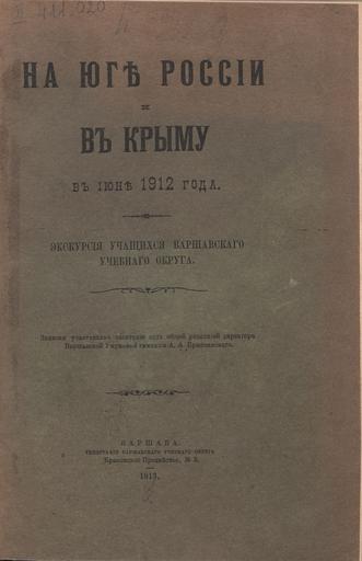 Keywords: 1912. На юге России и в Крыму 01.jpg а юге России и в К ыму 1912 https //fotki yandex ru/users/humus777/album/403046 Ва шавская I мужская гимназия А А Б жезинского PD-RusEmpire In the south of Russia and the Crimea 1913 book