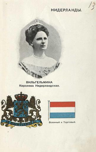| Keywords: 1913. 13. Нидерланды. Вильгельмина, королева Нидерландская.jpg Альбом госуда ей п езидентов госуда ственных ге бов и национальных флагов главнейших госуда ств 1913 https //fotki yandex ru/users/humus777/album/485681/ not specified PD-RusEmpire Album of monarchs presidents state emblems and national flags of major states 1913 |