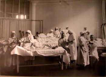 | Keywords: 1914. 34. Медицинские сестры за перевязкой раненых в перевязочной лазарета Городского кредитного общества.jpg 1914 34 едицинские сест ы за пе евязкой аненых в пе евязочной лаза ета Го одского к едитного общества jpg 1914 https //fotki yandex ru/users/humus777/album/445619/ not specified PD-RusEmpire Medicine in Russia in 1914 Medicine in Moscow 1914 in Moscow | ||||