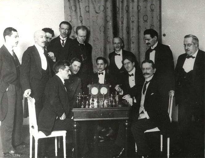 | Keywords: 1914 Samuil Alehin.jpg ru Фото 1914 года Шахматный ту ни в Санкт-Пете бу ге Слева С О Вайнштейн Сидят Э Ласке А Алехин Х Р Капабланка 2014-10-31 00 30 16 http //www e3e5 com/article php id 1701 author other versions Custom license marker 2014 10 31 PD-old-70 Uploaded with UploadWizard Petrischule |