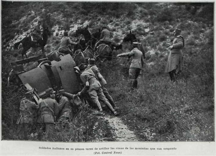 | Keywords: 1914-soldati-italiani-in-montagna.jpg  it Soldati italiani durante il trasporto dell'artigliera per munire una vetta conquistata durante la prima Guerra mondiale 1914 La Guerra ilustrada N º 51 Fot Central News other versions PD-old Uploaded with UploadWizard Photographs of World War I La Guerra Ilustrada Italy in World War I Central News Photo Service |