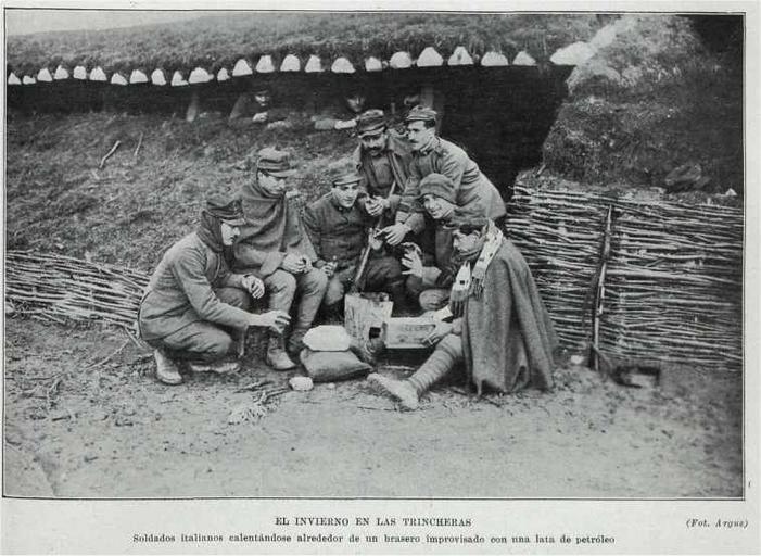 | Keywords: 1914-soldati-italiani-in-trincea.jpg  it Soldati italiani in trincea si riscaldano a un fuoco improvvisato durante la prima Guerra mondiale 1914 La Guerra ilustrada N º 51 Fot Argus other versions PD-old Uploaded with UploadWizard Photographs of World War I La Guerra Ilustrada Italy in World War I People associated with World War I from Italy |