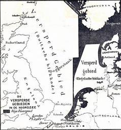 | Keywords: 1914versperdgebied.jpg Nederland en de Wereldoorlog De versperde gebieden in de Noordzee Groote Historische Schoolatlas ten gebruike bij het onderwijs in de vaderlandsche en algemene geschiedenis no 8 achterzijde 1920 H Hettema jr ed PD-old Naval warfare maps of World War I North Sea theatre of World War I Netherlands in World War I Maps showing history in Dutch |