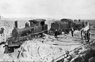 | Keywords: tasmania blackandwhite monochrome outdoor black and white L class Garratt locomotive rescues a D class tank locomotive perched over the edge of the Hobart Rivulet diversion cut after being put in the wrong road during shunting. L class Garratt locomotive rescues a D class tank locomotive perched over the edge of the Hobart Rivulet diversion cut after being put in the wrong road during shunting. | ||||