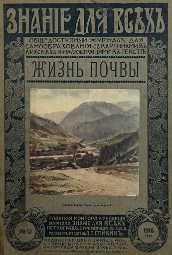 | Keywords: Знание для всех. 1916. №12. Жизнь почвы. — Обложка.jpg Знание для всех 1916 12 ово усский В Жизнь почвы Обложка 1916 http //www baoo ru/product/25901923 Ред -изд П П Сойкин PD-RusEmpire Znaniye dlya vsekh Magazines of Russia 1916 Title pages uploaded by Steven Pavlov from various sources |