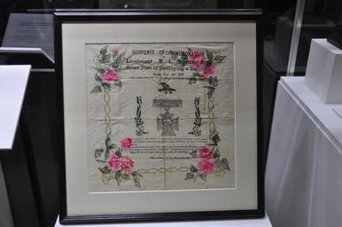 | Keywords: 1916 Souvenir of destroying an airship.JPG Pictures from RAF Museum Hendon Souvenir of the destruction of a Zeppelin by an Royal Flying Corps pilot 3 Sep 1916 Printed on tissue paper with watercolour design this souvenir commemorates an RAF pilot shooting down a German Zeppelin airship Text Souvenir in Commemoration of Lieutenant W L Robinson's Great Feat of Destroying a Zeppelin Sunday sept 3rd 1916 His greatest reward the Heartfelt Thanks of every Woman and Child in England His Majestry the King has been graciously pleased to award the Victoria Cross to Lieut William Leefe Robinson Worcester Regt and R F C for most conspicuous bravery He attacked an enemy airship under circumstances of great difficulty and danger and sent it creashing to the ground a flaming wreck He had been in the air for more than two hours and had previously attacked another airship during his flight Printer S Burgess York Place Strand London WC on display at RAF Museum London Photo own work 2014-07-17 18 21 17 Original author not known but probably the printer S Burgess of York Place Photo by User The Land Pd-old World War I Zeppelins raids on London 1916 in London Souvenirs RAF Museum London |