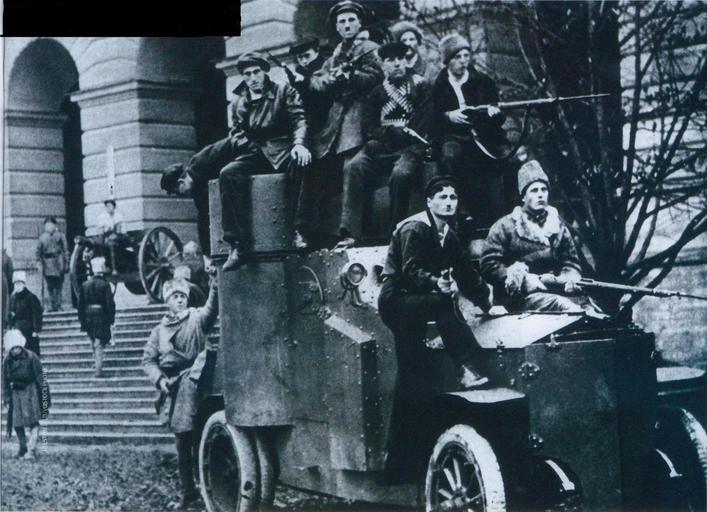 | Keywords: Броневик у Смольного 1917.JPG Б онеавтомобиль «Фиат Ижо ский» Ижо ского завода на шасси ФИАТ изготовленном в САСШ на филиале фи мы б онекузов Ижо ского завода «Илья у омец» у Смольного института в Пет ог аде Самое начало нояб я н ст 1917 <code>С самого ут а 25 октяб я у штаба еволюции Смольного все кипело Подъезжали и отъезжали г узовики с к асногвадейцами легковые автомобили и связные мотоциклы П ямо на т отуа ах асполагались от яды еволюционных абочих солдат и мат осов Дымили походные кухни Слева от главного подъезда Смольного у стены стояло шесть б онеавтомобилей Запасного автомобильного б онедивизиона Командование дивизиона сох аняло ве ность В еменному п авительству о несмот я на это еволюционным солдатам удалось вывести 24 октяб я из га ажа шесть б оневиков и доставить их к Смольному Днем 25 октяб я к Смольному на большой ско ости подкатила еще одна седьмая боевая машина б онедивизиона Илья у омец кото ой тоже удалось вы ваться из га ажа Это был полугусеничный б онеавтомобиль конст укции Гулькевича У под азделений обо онявших Зимний тоже имелся б оневик Он стоял п ямо у цент альных во от здания и де жал под п ицелом всю Дво цовую площадь П авда он был не на ходу и мог использоваться только как неподвижная пулеметная точка Л Д Глаголев Б онемашины Издательство ДОСААФ 1986 </code> То есть или это не Илья у омец или Глаголев не п ав свой скан бумажной ве сии жу нала «Вок уг света» 11 2806 - 2007 ст 95 Scanned from magazine «Вок уг света» 11 2806 - 2007 p 95 by Vizu transferred from ru wikipedia Infovarius 20-е числа октяб я 1917 года неизвестен; в источнике не указан Unknown original uploader Vizu wikipedia ru PD-RusEmpire PD-old Original upload log page ru wikipedia D0 91 D1 80 D0 BE D0 BD D0 B5 D0 B2 D0 B8 D0 BA_ D0 B8_ D1 8E D0 BD D0 BA D0 B5 D1 80 D0 B0_ D0 BD D0 B0_ D0 94 D0 B2 D0 BE D1 80 D1 86 D0 BE D0 B2 D0 BE D0 B9_ D0 BF D0 BB D0 BE D1 89 D0 B0 D0 B4 D0 B8_1917 jpg 2008-10-08 14 50 Vizu 1463×829× 261294 bytes Описание Авто В емя создания Источник Smolny Institute Russian Revolution of 1917 Fiat Izhorsky |