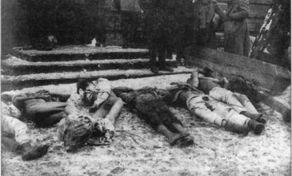 | Keywords: Бахмут 1919 тіла в'язнів.jpg uk Тіла в'язнів от уєних денікінськими військами пе ед відступом з м Бахмут Тіла покалічені і оголені 1919 Ост ого ский - Бо ьба за Октяб ь на А темовщине невідомий other versions Custom license marker 2015 06 01 PD-Ukraine Uploaded with UploadWizard History of Artemivsk Donetsk Oblast |