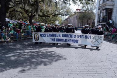 | Keywords: 191st Savannah St. Patrick's Day Parade 150317-N-OS575-176.jpg en 150317-N-OS575-176 SAVANNAH Ga March 17 2015 Sailors from the guided-missile frigate USS Samuel B Roberts FFG 58 stationed at Naval Station Mayport march in the 191st Savannah St Patrick's Day Parade in Savannah Ga U S Navy photo by Mass Communication Specialist 2ND Class Sean P La Marr/Released Unit Navy Media Content Services DVIDS Tags NMCS; DVIDS Bulk Import 2015-03-17 Petty Officer 3rd Class Sean La Marr https //www dvidshub net/image/1824918/191st-savannah-st-patricks-day-parade 150317-N-OS575-176 2015-03-20 03 59 SAVANNAH GA US PD-USGov-Military-Navy Naval Station Mayport Images from DoD uploaded by Fæ |