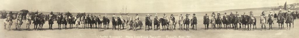 | Keywords: 1921 pageant Plymouth Massachusetts LC 6a25082u.jpg Title Mounted Performers Pilgrim Tercentenary Pageant Plymouth Mass 1921 Related Names Russell Geo H George Hall Date Created/Published 1921 Medium 1 photographic print gelatin silver ; 8 x 37 5 in Repository Library of Congress Prints and Photographs Division Washington D C 20540 USA Library of Congress / http //www loc gov/pictures/item/2007661700/ 1921 Author unknown PD-Old History of Plymouth Massachusetts Costumes evoking colonial America |