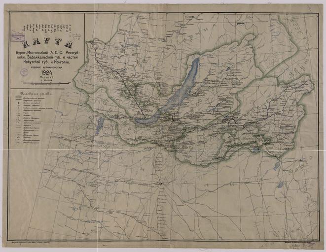 | Keywords: Карта Бурят-Монгольской А.С.С. Республики, Забайкальской губ. И частей Иркутской губ. и Монголии. - Иркутск : Издание Бурнаркомзема, 1924. - 1 л. : Литография. 3цв. ; 90х111 (97х116) см см