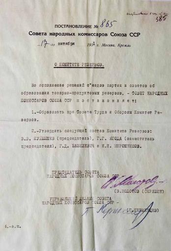 Keywords: 19311017-production reserve komitee molotow kuibyshew yagoda.jpg de Beschluss des Rates der Volkskommissare zur Gründung eines Komitees zur Verwaltung der Produktionsreserven in der UdSSR Erster Vorsitzender Valerian Kuybyshev stellv Vorsitzender Genrich G Jagoda weitere Mitglieder G D Basilewitsch I I Miroschnikow Феде альное агентство по госуда ственным езе вам http //portal2 www rosreserv ru/_data/gallery/185/ist_001_1 jpg Wjatscheslaw Michailowitsch Molotow 1931-10-17 PD-RU-exempt Valerian Kuybyshev Vyacheslav Molotov Genrikh Yagoda |