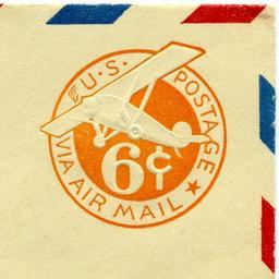 | Keywords: 1934 US Airmail Stamped Envelope Indicium - 6 cents.jpg en 1934 U S airmail stamped envelope indicium - 6 cents denomination 1934 U S Post Office Department scan of stamped envelope owned by contributor U S Post Office Department PD-USGov Uploaded with UploadWizard Cut squares of the United States |