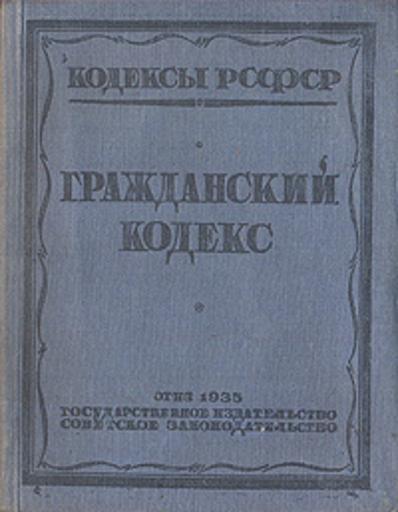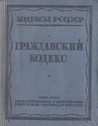 | Keywords: ГК РСФСР 1935.jpg ru Обложка Г ажданского кодекса РСФСР 1922 г в издании 1935 г Издательство Советское законодательство Cover of the 1935 edition of the 1922 Civil Code of Russian Federation RSFSR http //www ozon ru/context/detail/id/4412353/ Анонимная абота созданная до 1943 г 1935 PD-Russia-2008 PD-old Law of the RSFSR Contract law Family law 1935 books Documents of the Soviet Union 1935 Civil codes | ||||