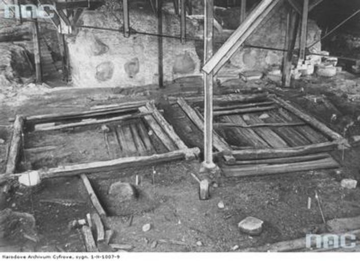 Keywords: Стары замак-1937.jpg Рэшткі жылых дамоў у Г одне знойдзенныя падчас аскопак Ста ы замак 1937 History of Hrodna Old castle 13th-century architecture in Belarus PD-old