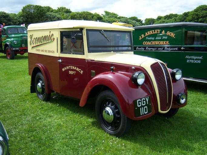 Keywords: 1941 Morris Z Type 2 (GGY 110) panel van, 2012 HCVS Tyne-Tees Run (1).jpg Morris Z Type 2 reg GGY 110 panel van pictured at the end of the 2012 HCVS Tyne-Tees Run just a month after the completion of its restoration It's believed to be just one of two surviving Morris Type-2 vans out of a production run of just 146 Originally a Post Office van it had apparently lay unused in a poulty farm barn near Edinburgh since it was last used believed to be 1962 based on its tax disc Re-discovered in 2009 when the farm was sold it's been restored by Gardiner's Coach Repairs of Spennymoor County Durham They painted in the livery of bus company Economic as their maintenance department vehicle to match a 1949 Albion Valiant bus reg KUP 789 previously restored by the company and also present at the rally own 2012-06-03 14 26 34 Ultra7 1941 Morris Z Type 2 GGY 110 panel van 2012 HCVS Tyne-Tees Run 2 jpg 1941 Morris Z Type 2 GGY 110 panel van 2012 HCVS Tyne-Tees Run 3 jpg 2012 HCVS Tyne-Tees Run 1941 trucks Morris Series Z Van 1941 Panel vans Economic bus company Bus transport ancillary vehicles in the United Kingdom |