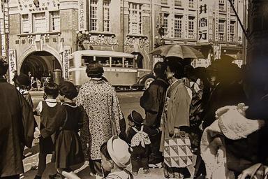 Keywords: 1942年(日昭和17年)台北榮町街景.jpg zh-hant 台灣著名 影家 火增(1911-1975)前輩拍 於日 時代1942年(日昭和17年)左右的 品:台北榮町街景 榮町範 大約是今日228 念公 西側起,衡陽路 寶慶路 山街之全部及博愛路, 日 時代是台北市 熱鬧也 繁華的商店街,當時台灣 大的百貨公司 菊元百貨 也設立於此; 照片拍 的位置推測可能 今台北市博愛路與衡陽路附近(?),對 街屋可 到當時台北市著名商家之 盛 商行茶鋪 店 延伸閱 : 高石組 社(今撫臺街洋樓) https //zh wikipedia org/wiki/高石組 台北榮町 https //zh wikipedia org/wiki/榮町_ 台北市 2014-05-06 03 10 27 台灣回憶探險 火增 PD-Japan-oldphoto PD-1996 Japan :翻 自 臺北 影中心 撫臺 / 臺北城風情特展 Uploaded with UploadWizard History of Taipei 1942 in Taiwan