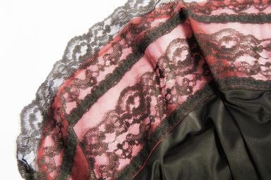 Keywords: Black lace over sheer red Perlon, with silky soft black Perlon bodice. How pretty! vintage cd tg perlon vintagelingerie blacklacelingerie vintageperlonslip