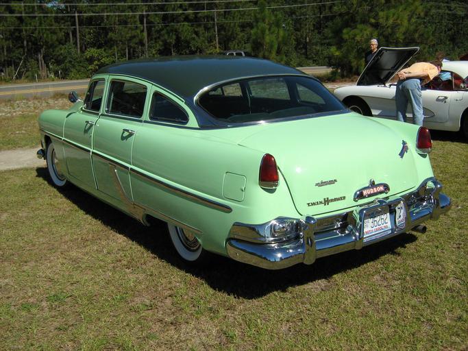 | Keywords: 1954 Hudson Hornet Twin H sedan green lv.jpg en 1954 Hudson Hornet A four-door Step-Down sedan finished in two-tone paint light green with darker green roof This car has the Twin-H-Power 308 cu in 5 0 L straight-six engine producing 170 hp 127 kW Picture taken at a local car show in North Carolina own 2010-10-09 CZmarlin ” Christopher Ziemnowicz releases all rights but a photo credit would be appreciated if this image is used anywhere other than Wikipedia Please leave a note at Wikipedia http //en wikipedia org/w/index php title User_talk CZmarlin action edit section new here Thank you en I the copyright holder of this work hereby release it into the public domain This applies worldwide Hudson trunk emblem <br> Hudson Hornet fender emblem <br> Hudson rocket trunk lid emblem <br> Hudson Twin H emblem on trunk <br> Hudson C-pillar detail <br> Hudson front door detail <br> Hudson front door detail <br> Hudson Twin H engine detail <br> Hudson Twin H engine detail <br> Hudson Twin H engine detail <br> Hudson Twin H engine detail <br> Hudson front end detail <br> Hudson hood scoop detail <br> Hudson interior detail <br> Hudson interior detail <br> Hudson interior detail <br> Hudson interior detail <br> Hudson interior detail <br> Hudson interior detail <br> Hudson left front <br> Hudson left rear <br> Hudson left side view <br> Hudson right front hood open <br> Hudson right front hood closed <br> Hudson right rear trunk open <br> Hudson right rear trunk closed <br> Hudson taillamp tailfin detail <br> Hudson front view head on <br> Hudson rear view tail end <br> 1954 Hudson automobiles Hudson Hornet Green sedans Automobiles facing left |