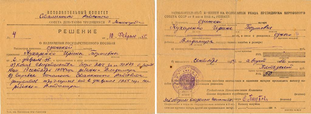 Keywords: Пособие одинокой матери, 1955.jpg ru Решение о назначении госуда ственного пособия одинокой мате и 1955 год 2014-10-05 08 46 11 own Vvk121 Владими Васильев other versions PD-RU-exempt Documents of the Soviet Union Одинокая мать
