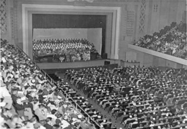 | Keywords: blackandwhite monochrome black and white 2014-1060m Description: Congregation of 3000 at Sunday afternoon rally in Civic Auditorium; General Conference sessions; used in Der Bote, Oct. 31, 1956; Mennonite Publication Office cut no. 12323; one copy has a Better Films rubber stamp Date: 1956 Location: Winnipeg, Manitoba MLA filing: Conferences - GC - 1956 Original Size: 17 x 11.5 cm Source: Photographer: William Zehr? 2014-1060m Description: Congregation of 3000 at Sunday afternoon rally in Civic Auditorium; General Conference sessions; used in Der Bote, Oct. 31, 1956; Mennonite Publication Office cut no. 12323; one copy has a Better Films rubber stamp Date: 1956 Location: Winnipeg, Manitoba MLA filing: Conferences - GC - 1956 Original Size: 17 x 11.5 cm Source: Photographer: William Zehr? |