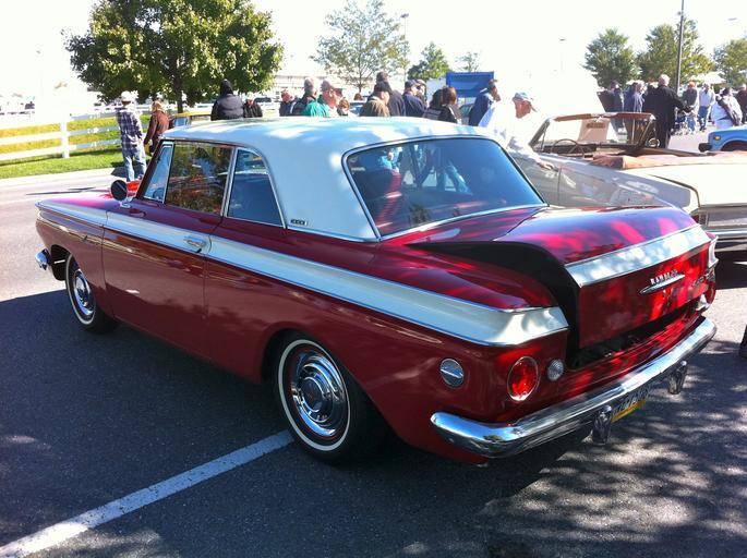 | Keywords: 1963 Rambler American 440 hardtop Hershey 2012 r.jpg en 1963 Rambler American a compact-sized automobile built by American Motors Corporation AMC Rear left side view This is a two-door hardtop no B-pillar in the 440 series model Finished in two-tone red and white paint with matching interior This car features individually adjustable reclining front bucket seats a center console as well as the Twin-Stick manual overdrive transmission Picture taken on the automobile sales field of the Antique Automobile Club of America AACA 2012 Hershey meet that is held in October 2012-10-13 12 43 25 own CZmarlin ” Christopher Ziemnowicz releases all rights but a photo credit would be appreciated if this image is used anywhere other than Wikipedia Please leave a note at Wikipedia http //en wikipedia org/w/index php title User_talk CZmarlin action edit section new here Thank you thumb left Front view of this compact car thumb center Interior thumb left upright Detail of hood ornament 40 285333333333 -76 674666666667 cc-zero 1963 AMC automobiles Rambler American Red coupes Red and white automobiles Uploaded with UploadWizard Automobiles facing left |