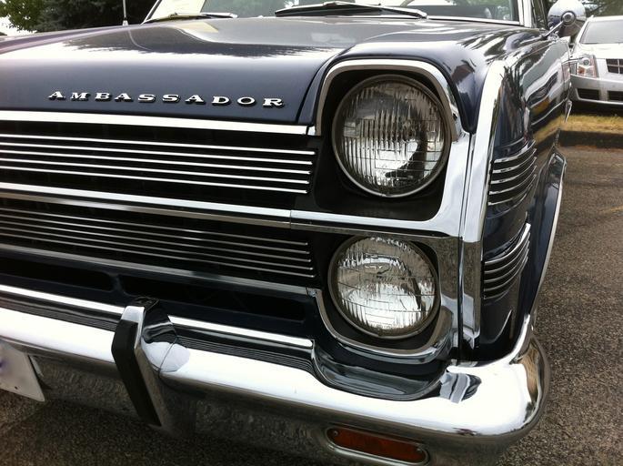 Keywords: 1966 AMC Ambassador 990 4-sp convertible AACA Iowa m.jpg 42 028833333333 -91 651833333333 en 1966 AMC Ambassador 990 convertible finished in blue - detail of stacked dual headlamps This is a full-sized automobile built by American Motors Corporation AMC in Kenosha Wisconsin This is an all original one-owner car that was special ordered by them Among the features on this car are its 327 cu in 5 4 L 4--barrel carb V8 engine with a 4-speed manual transmission center console mounted shifter with black bucket seats as well as an AM/FM radio and an aftermarket 8-track stereo player Picture taken at the 2012 Antique Automobile Club of America AACA Central Spring meet in Cedar Rapids Iowa USA 2012-06-23 14 31 37 own CZmarlin ” Christopher Ziemnowicz releases all rights but a photo credit would be appreciated if this image is used anywhere other than Wikipedia Please leave a note at Wikipedia http //en wikipedia org/w/index php title User_talk CZmarlin action edit section new here Thank you thumb left Left side front view thumb center Right rear view thumb left Rear view thumb center Right side view thumb left Front view thumb center Interior view thumb left Driver's compartment thumb center Interior view thumb left Left side of engine thumb center Right side of engine thumb left Another front view thumb center Another front right view thumb left Model name and wheel detail thumb center Right front view thumb left upright Tail lamp detail cc-zero AMC Ambassador Uploaded with UploadWizard Automobile headlamps AMC logos |