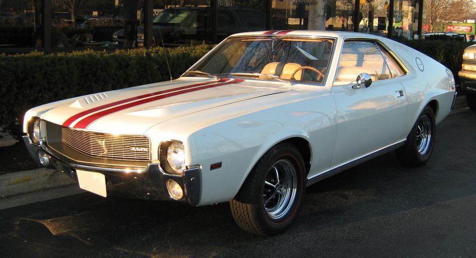 Keywords: 1968 AMC AMX 390 GO PAC white f.jpg 1968 AMX by American Motors Corporation AMC two-seat sport coupe White with red stripes This car has the optional 390 Go Package that included the 390 cu in 6 4 L 315 hp 235 kW V8 engine racing stripes power disk brakes Twin-Grip differential and other high-performance components The wheels and red stripe tires are correct for the year own 2008-12-13 CZmarlin ” Christopher Ziemnowicz releases all rights but a photo credit would be appreciated if this image is used anywhere other than Wikipedia Please leave a note at Wikipedia http //en wikipedia org/w/index php title User_talk CZmarlin action edit section new here Thank you thumb left Side view of this car thumb center Rear view of this car AMC AMX White coupes |