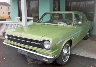 | Keywords: 1968 Rambler American 440 4-door sedan green VA-fl.jpg en 1968 Rambler American by American Motors Corporation - AMC front left side view of this 440 series 4-door sedan finished in Laurel Green Iridescent paint code - P46A Photographed near Madison Virginia classic car dealer on US-29 2012-12-09 12 54 11 own CZmarlin ” Christopher Ziemnowicz releases all rights but a photo credit would be appreciated if this image is used anywhere other than Wikipedia Please leave a note at Wikipedia http //en wikipedia org/w/index php title User_talk CZmarlin action edit section new here Thank you thumb left Head on view thumb center Front right side view thumb left Detail of vent window and outside rear view mirror thumb center Detail of emblems on front fender thumb left Steering wheel and dashboard thumb center Driver's cockpit and dashboard thumb left Interior detail thumb center Detail of rear window thumb left Front seats thumb upright center Rear seats thumb left Detail of model name and C pillar 38 393833333333 -78 238666666667 cc-zero Rambler American Uploaded with UploadWizard Green Rambler sedans Automobiles facing left |