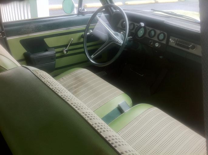 | Keywords: 1968 Rambler American 440 4-door sedan green VA-if.jpg en Interior view of driver's area in 1968 Rambler American by American Motors Corporation - AMC 440 series 4-door sedan finished in Laurel Green Iridescent paint code - P46A with matching green interior Photographed near Madison Virginia classic car dealer on US-29 2012-12-09 12 54 55 own CZmarlin ” Christopher Ziemnowicz releases all rights but a photo credit would be appreciated if this image is used anywhere other than Wikipedia Please leave a note at Wikipedia http //en wikipedia org/w/index php title User_talk CZmarlin action edit section new here Thank you thumb left Front left side thumb center Front right side thumb left Detail of vent window and outside rear view mirror thumb center Detail of emblems on front fender and full wheel cover thumb left Head on view thumb center Steering wheel and dashboard thumb left Interior detail thumb center Detail of rear window thumb left Front seats thumb upright center Rear seats thumb left Detail of model name and C pillar 38 393833333333 -78 238666666667 cc-zero Rambler American AMC interiors Uploaded with UploadWizard Automobile cockpits |