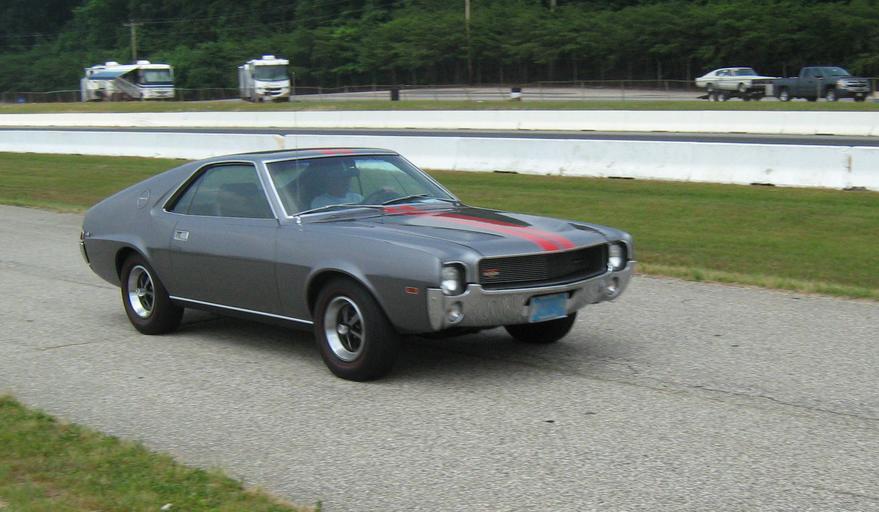 | Keywords: 1969 AMC AMX Castilian Gray mdD-1.jpg en 1969 AMX a two-seat GT sport coupe made by American Motors Corporation AMC This muscle car has the 343 Go Package that included the 343 cu in 5 6 L high-compression 4-bbl V8 280 hp 209 kW; 284 PS V8 engine racing stripes power front disk brakes Twin-Grip rear differential Magnum 500 wheels with trim ring E70x14 red-stripe performance tires and other high-performance components This car is finished in Castilian Gray metallic paint code P63 and red Go Pac stripes Photograph taken as this car was returning from a fun drive down the drag strip during the Potomac Ramblers automobile club's 2011 All AMC Drag Race Day held at the Capitol Raceway a NHRA sanctioned 1/4 mile asphalt and concrete drag strip located in Crofton Maryland own 2011-06-11 CZmarlin ” Christopher Ziemnowicz releases all rights but a photo credit would be appreciated if this image is used anywhere other than Wikipedia Please leave a note at Wikipedia http //en wikipedia org/w/index php title User_talk CZmarlin action edit section new here Thank you en I the copyright holder of this work hereby release it into the public domain This applies worldwide thumb left Front end headlight turning light and the grille AMX badge detail thumb center The AMX badge on C-pillar panel thumb left Magnum 500 road wheel with correct red-stripe tires thumb center The 343 emblem on the rear fender thumb left The AMC corporate logo mounted below rear window and centered between the racing stripes AMC AMX 1969 AMC automobiles Gray coupes Automobiles facing right |