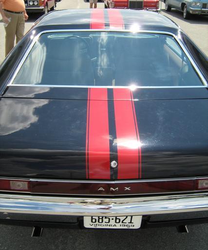| Keywords: 1969 AMX black with red stripes VA t.jpg en 1969 AMX by American Motors Corporation AMC A two-seat GT-type sports coupe Finished in Classic Black with red stripes This car has the optional 390 Go Package that included the 390 cu in 6 4 L 315 hp 235 kW V8 engine racing stripes over the hood roof and trunk power disk brakes front Twin-Grip differential heavy-duty cooling including a seven-blade flex fan and shroud as well as a 140-mph 225-km/h speedometer and styled steel Magnum 500 wheels with bright trim rings own 2010-06-19 CZmarlin ” Christopher Ziemnowicz releases all rights but a photo credit would be appreciated if this image is used anywhere other than Wikipedia Please leave a note at Wikipedia http //en wikipedia org/w/index php title User_talk CZmarlin action edit section new here Thank you en I the copyright holder of this work hereby release it into the public domain This applies worldwide thumb left View of the front thumb center View of the rear thumb left Right side view AMC AMX Red stripes 1969 AMC automobiles |