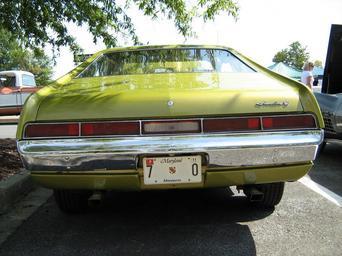 | Keywords: 1970 AMC Javelin 304 base model rear.jpg en View of the rear end of a 1970 AMC Javelin A pony car built by American Motors Corporation This two-door hardtop no B-pillar is the base model finished in Golden Lime Metallic paint code P90 own 2010-09-19 CZmarlin ” Christopher Ziemnowicz releases all rights but a photo credit would be appreciated if this image is used anywhere other than Wikipedia Please leave a note at Wikipedia http //en wikipedia org/w/index php title User_talk CZmarlin action edit section new here Thank you en I the copyright holder of this work hereby release it into the public domain This applies worldwide thumb left View of right rear side with the hood up thumb center Interior view of the base model dashboard instrument panel has an aftermarket tachometer in place of the clock steering wheel aftermarket wrap and black bucket seats with center cushion thumb left Badge on fender identifying AMC's standard 304 CID 5 0 L V8 engine in this car AMC Javelin 1970 AMC automobiles Rear views of automobiles |